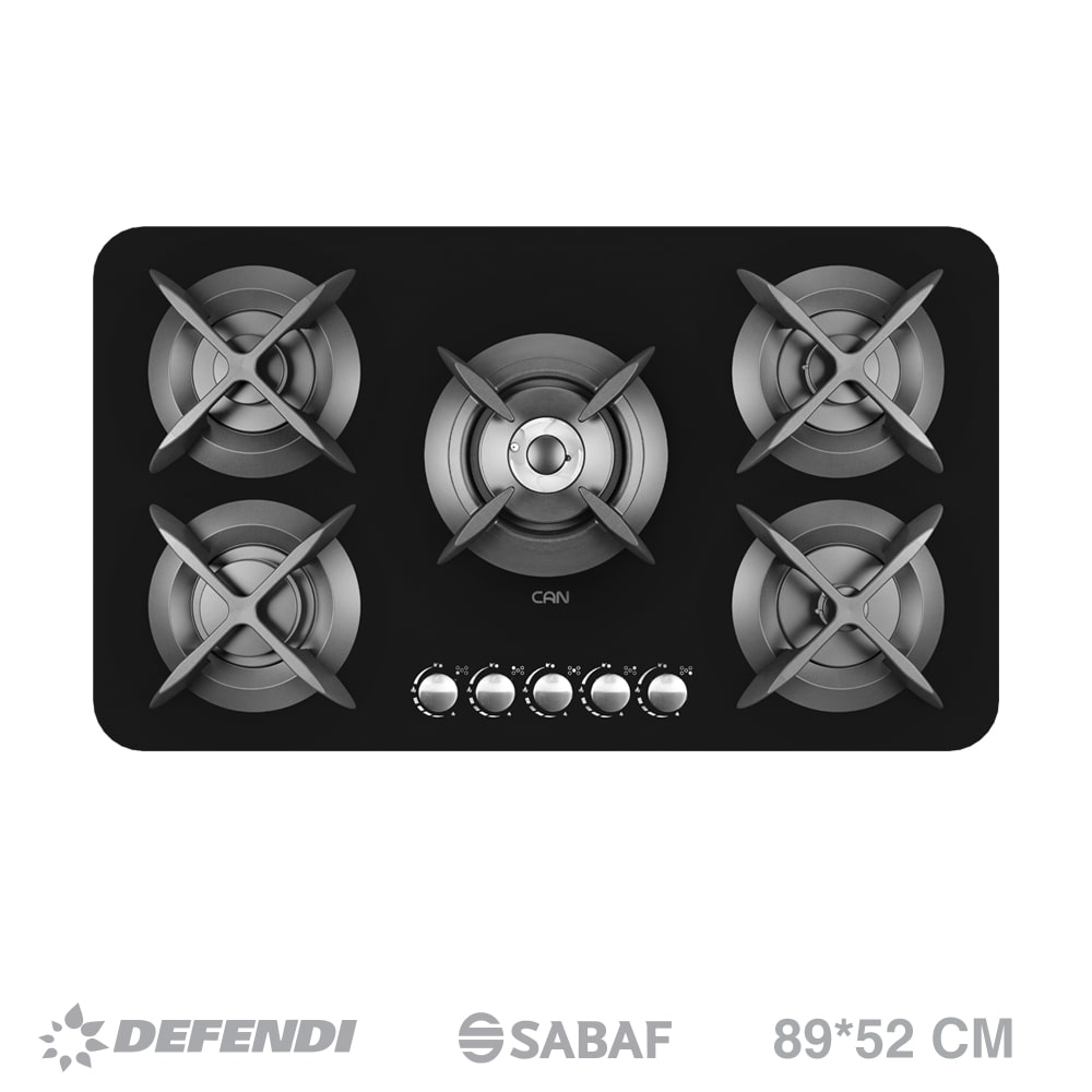 این محصول دارای پنج شعله است و جنس صفحه تمام شیشه آن به رنگ های مشکی و سفید است. در این مدل شعلهها به صورت دو به دو در طرفین و شعله پلوپز در وسط قرار گرفتهاند. این مدل دارای فندک اتوماتیک بوده و ولوم های کنترلی شعلهها در قسمت پایینی و میانی گاز تعبیه شدهاند.
